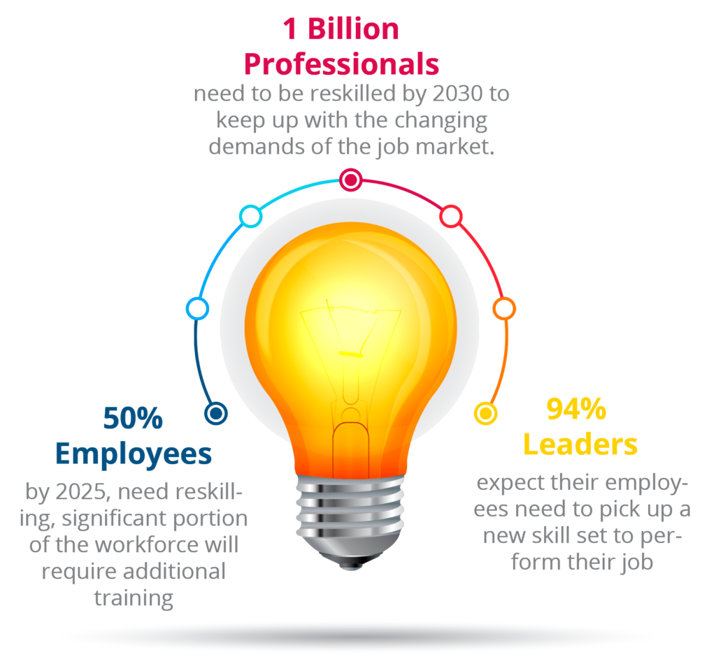 On right, statistics from World Economic Forum are shown [Upskilling Revolutions Is Inevitable!]